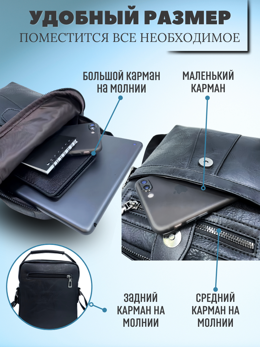 Сумка кросс-боди , фактура гладкая, черный 1 интересное: