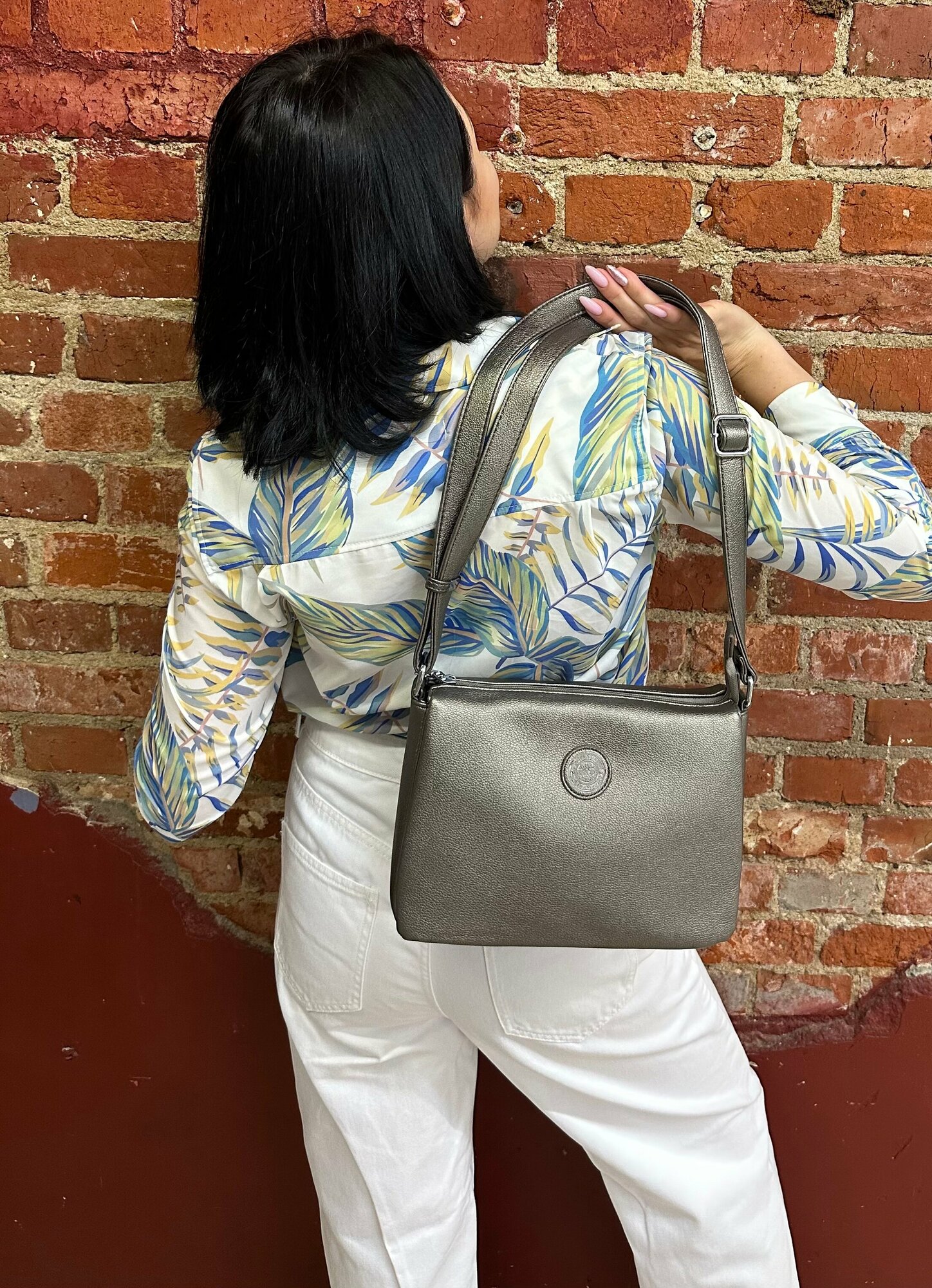 Купить Сумка кросс-боди Polina & Eiterou, фактура зернистая, серебристый