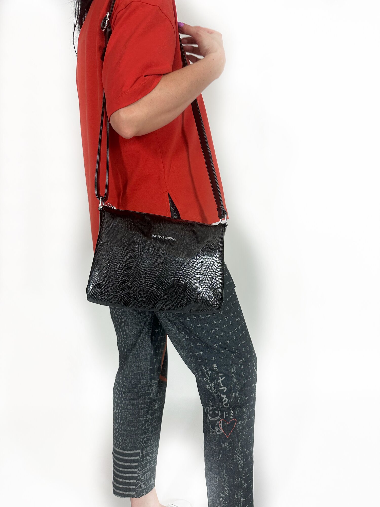 Сумка кросс-боди Polina & Eiterou, фактура зернистая, черный