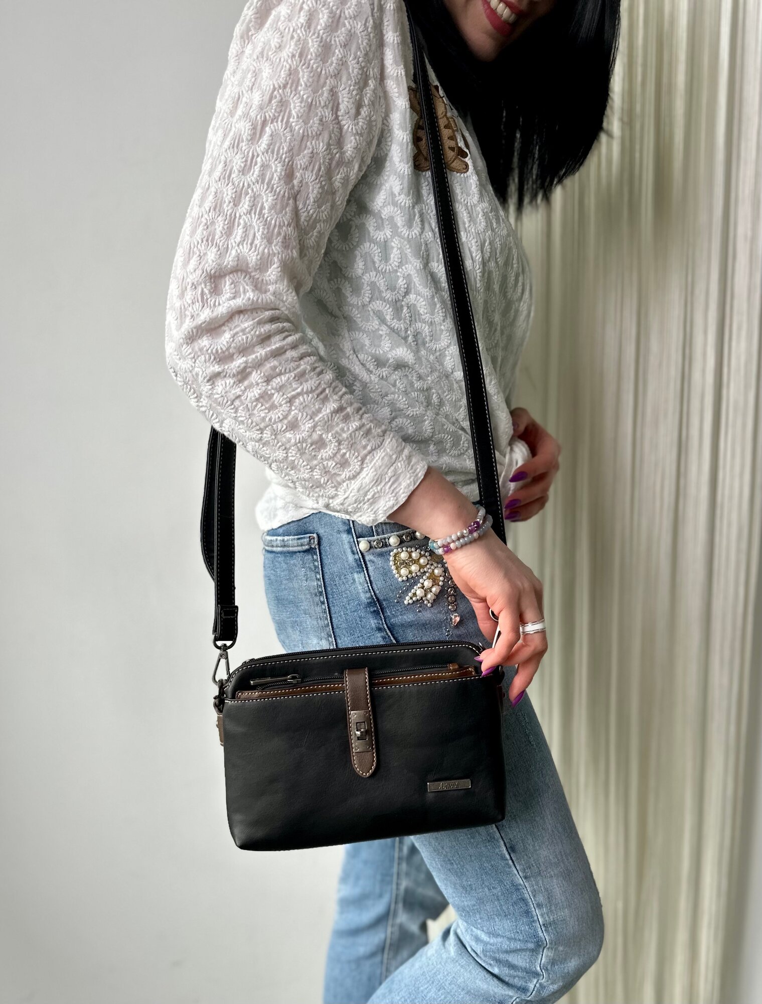 Сумка кросс-боди Flame Dance, фактура гладкая, черный интересное: