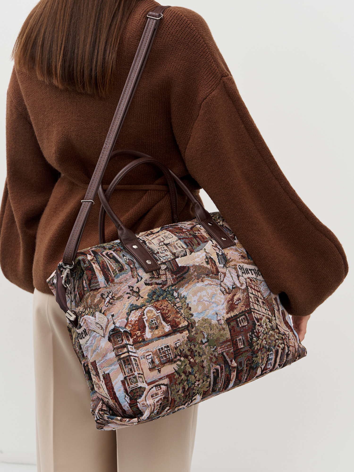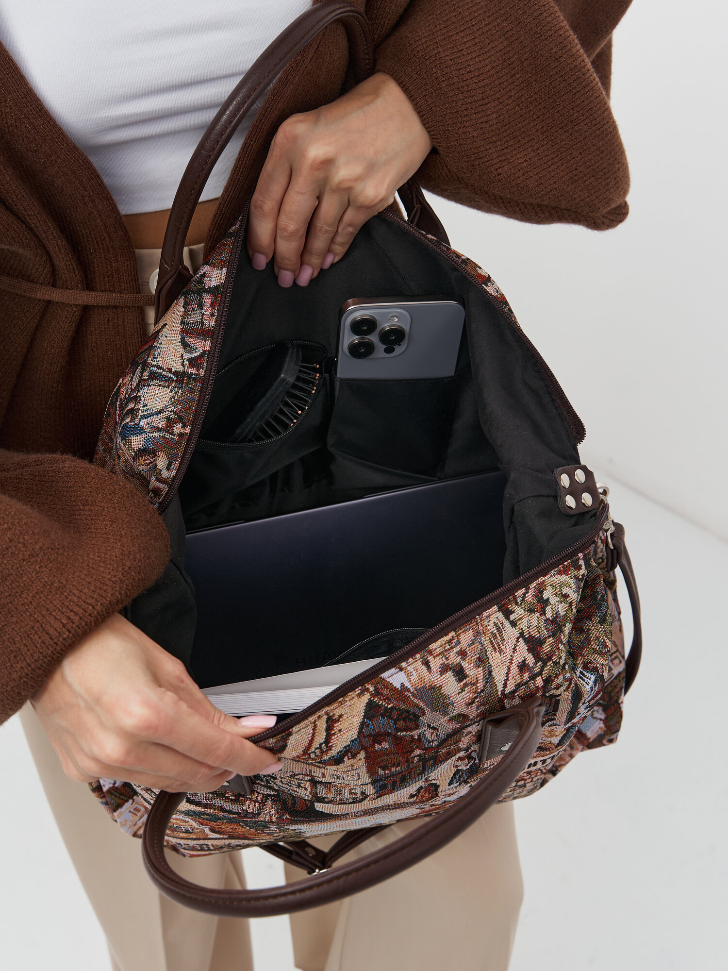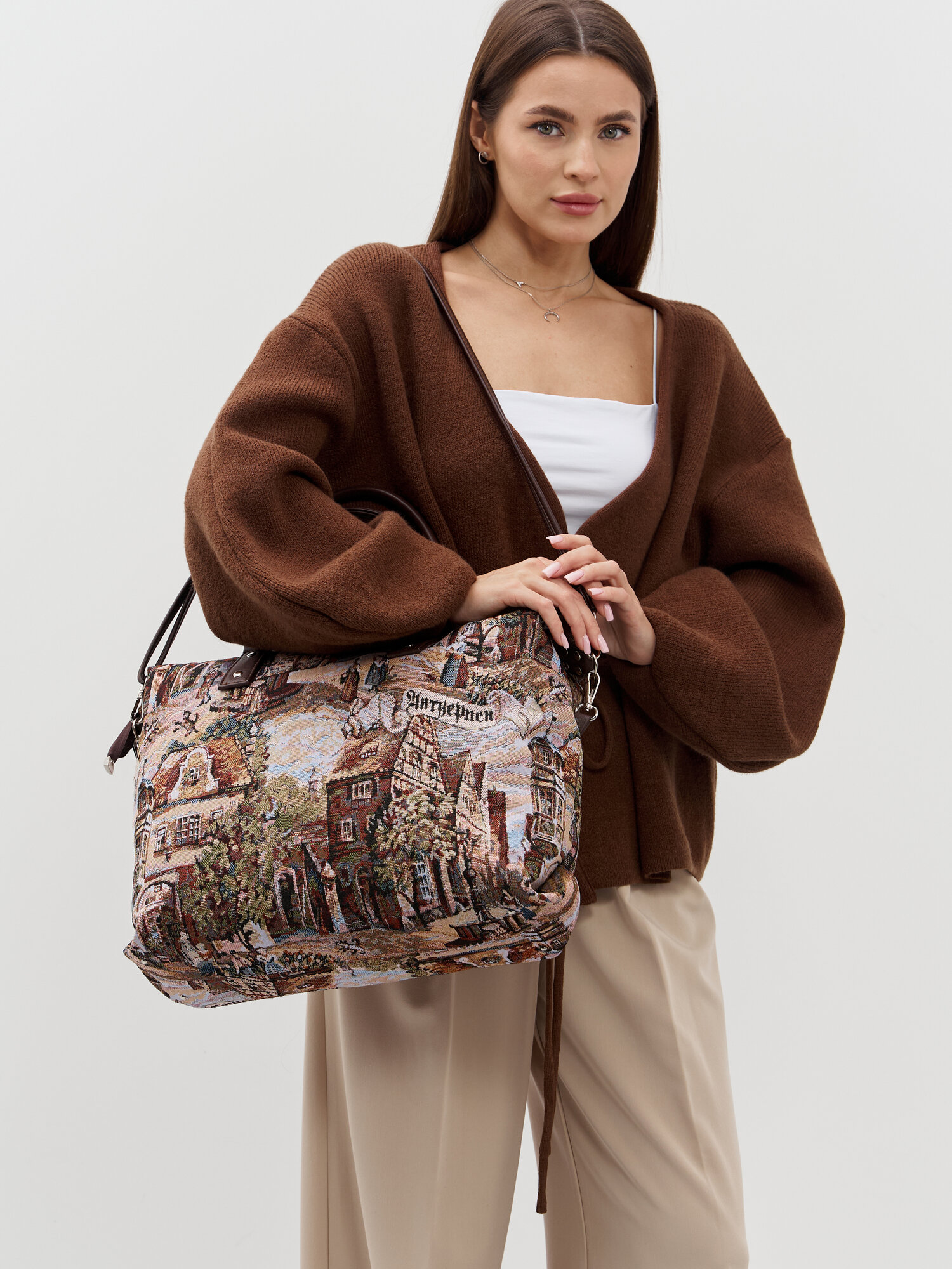Сумка тоут L-CRAFT, фактура матовая, бежевый, коричневый, зеленый, голубой интересное:
