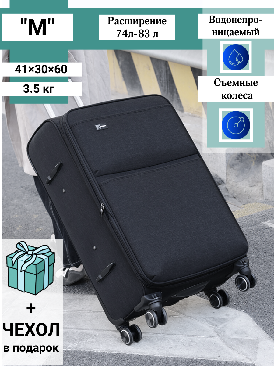 Чемодан POSSESS, 74 л, размер M, черный интересное: