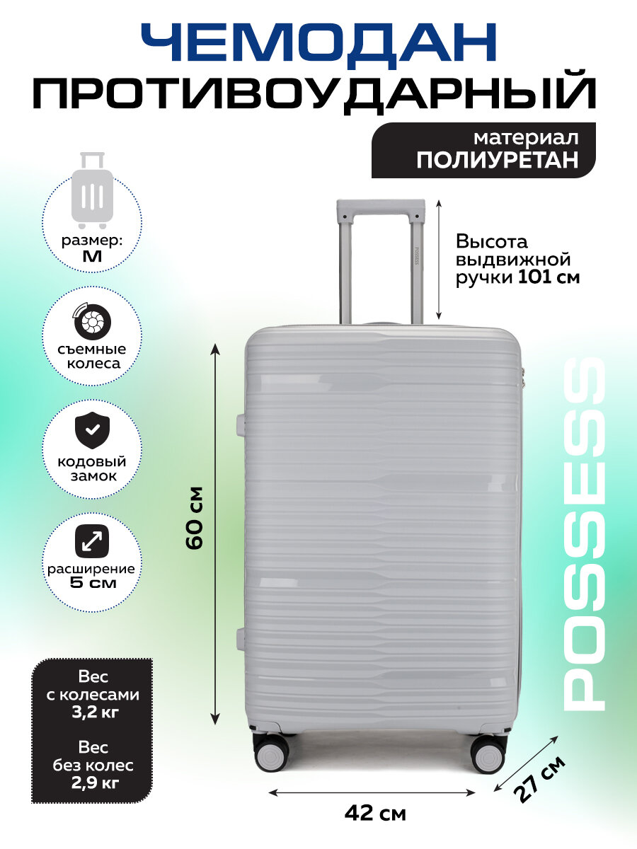 Чемодан POSSESS, размер M, светло-серый интересное: