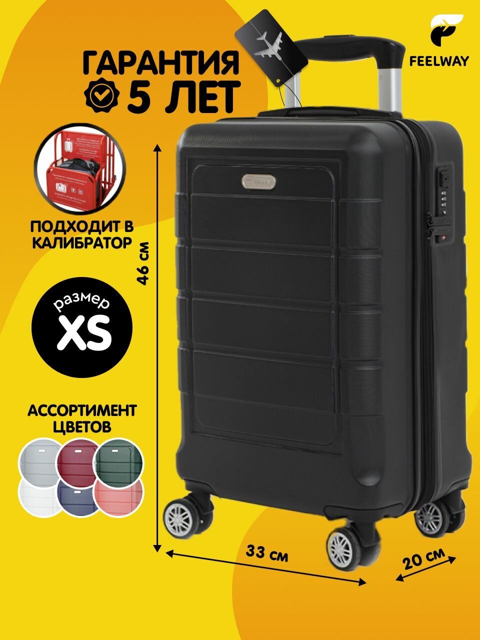 Чемодан FEELWAY, размер XS, черный интересное: