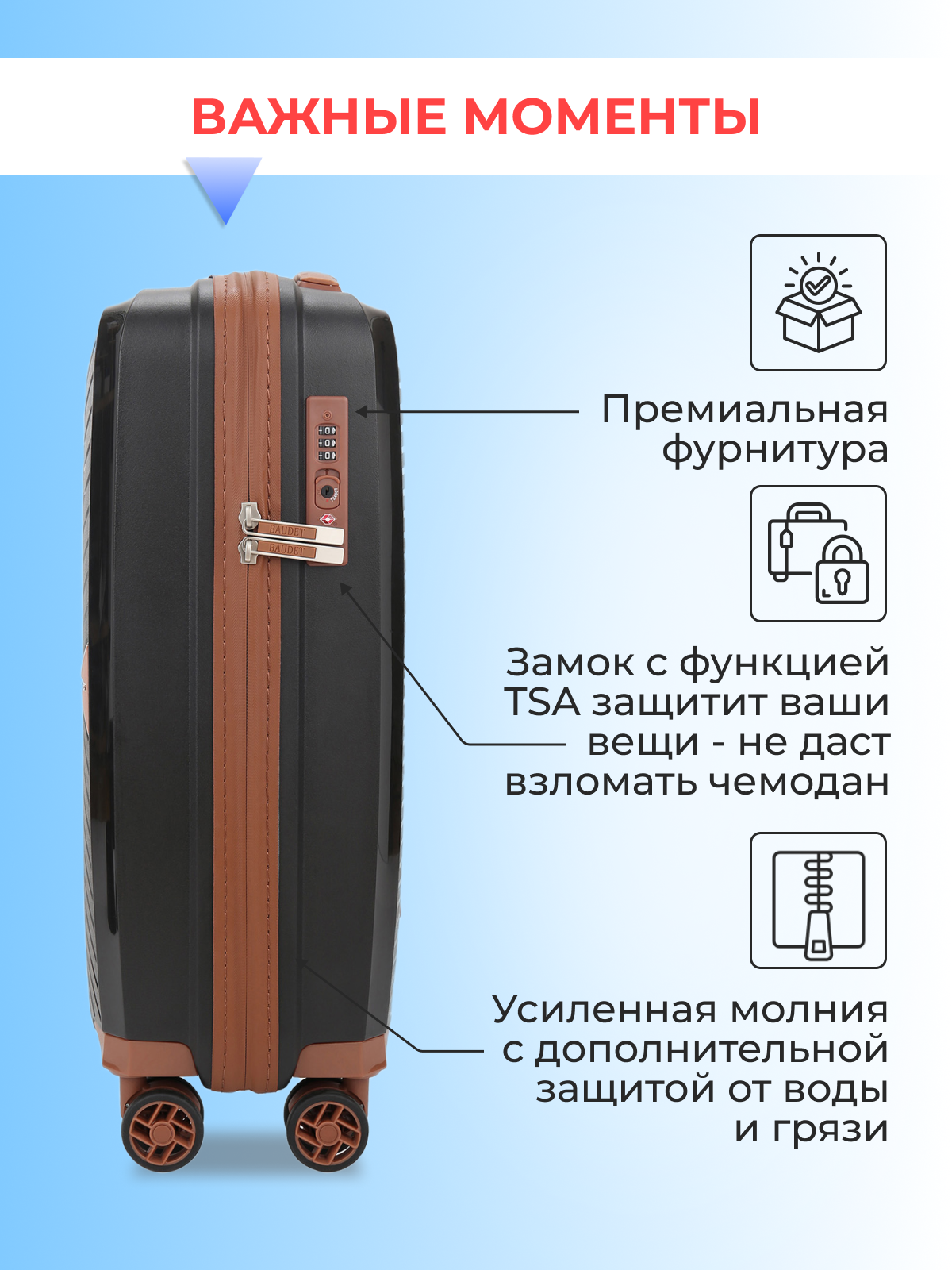 Чемодан BAUDET, 34.3 л, размер S, черный/коричневый интересное: