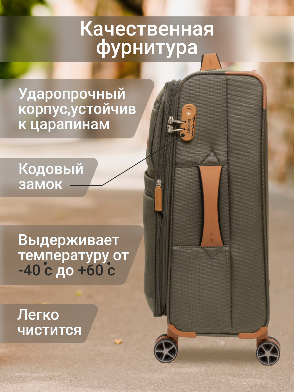 Чемодан BAUDET, 67 л, размер M, зеленый, хаки, коричневый интересное: