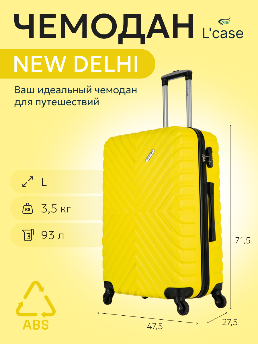 Купить Чемодан L'case New Delhi, 93 л, размер L, желтый