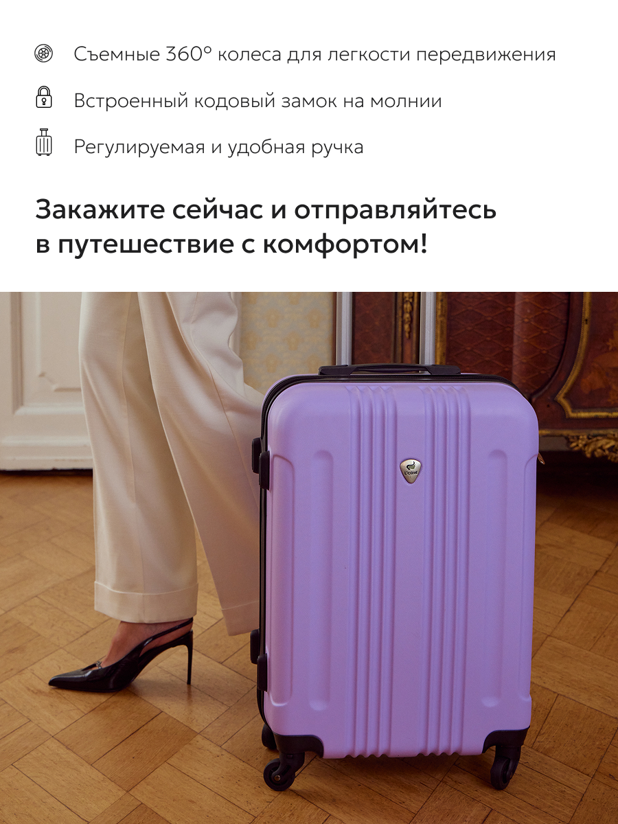 Чемодан L'case, 46 л, размер S+, лиловый
