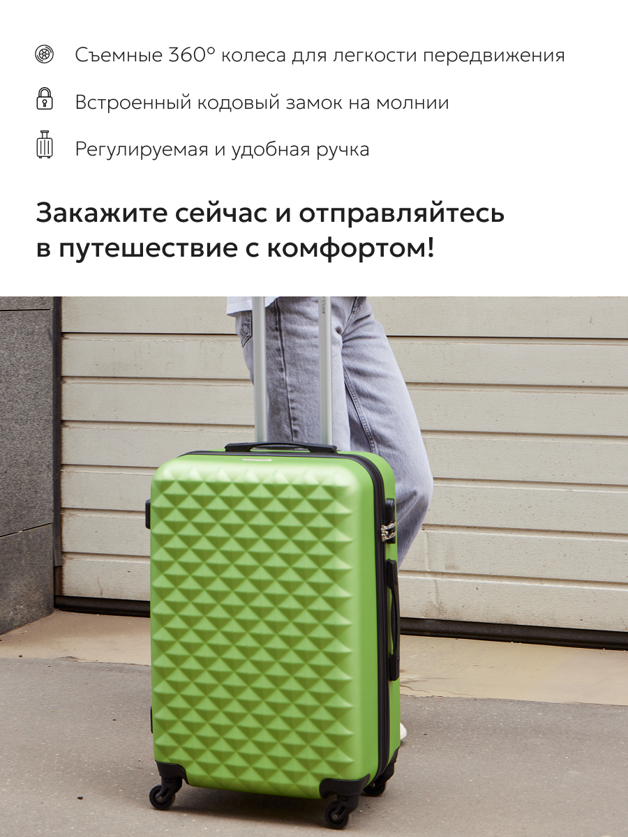 Чемодан L'case, 66 л, размер M, зеленый