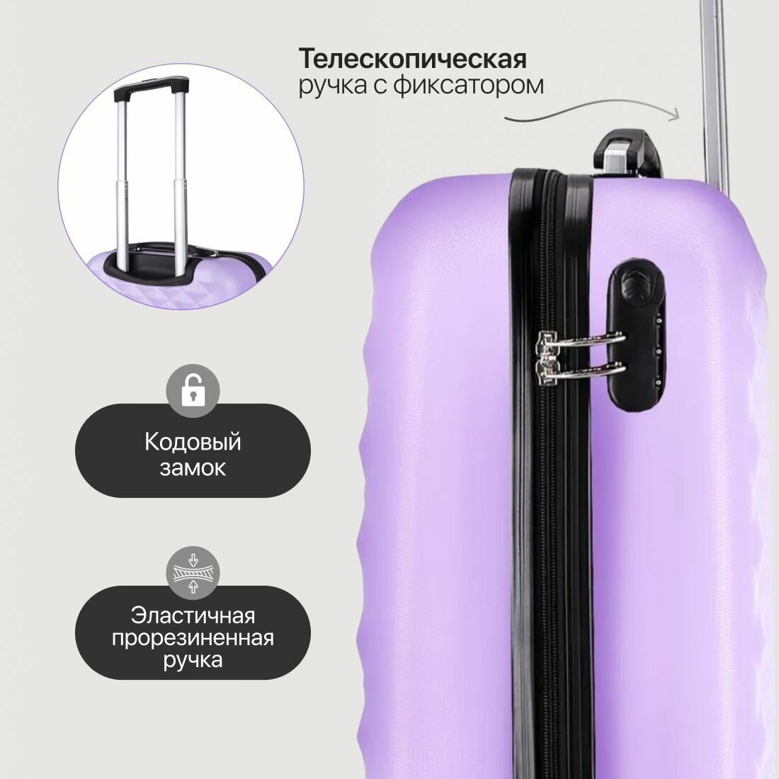 Купить Комплект чемоданов L'case, 115 л, размер XXL, лиловый