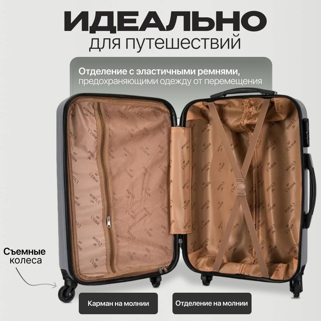 СохранитьКомплект чемоданов L'case, 115 л, размер XXL, серый интересное: