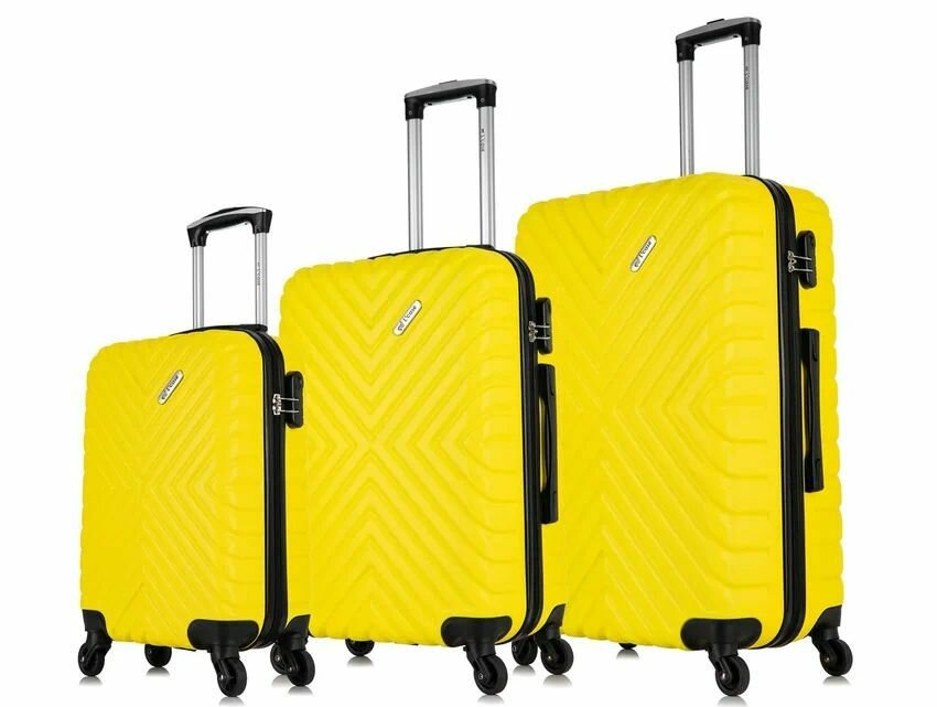 Комплект чемоданов L'case, 115 л, размер XXL, желтый