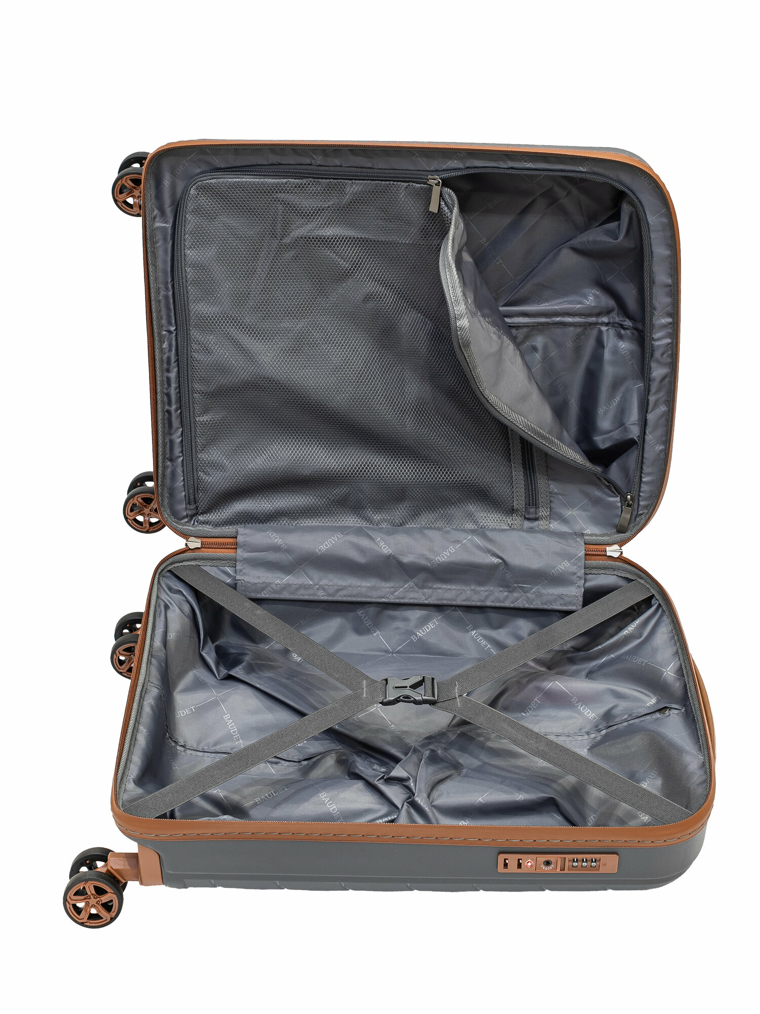 Чемодан BAUDET, 62.2 л, размер M, серый/коричневый