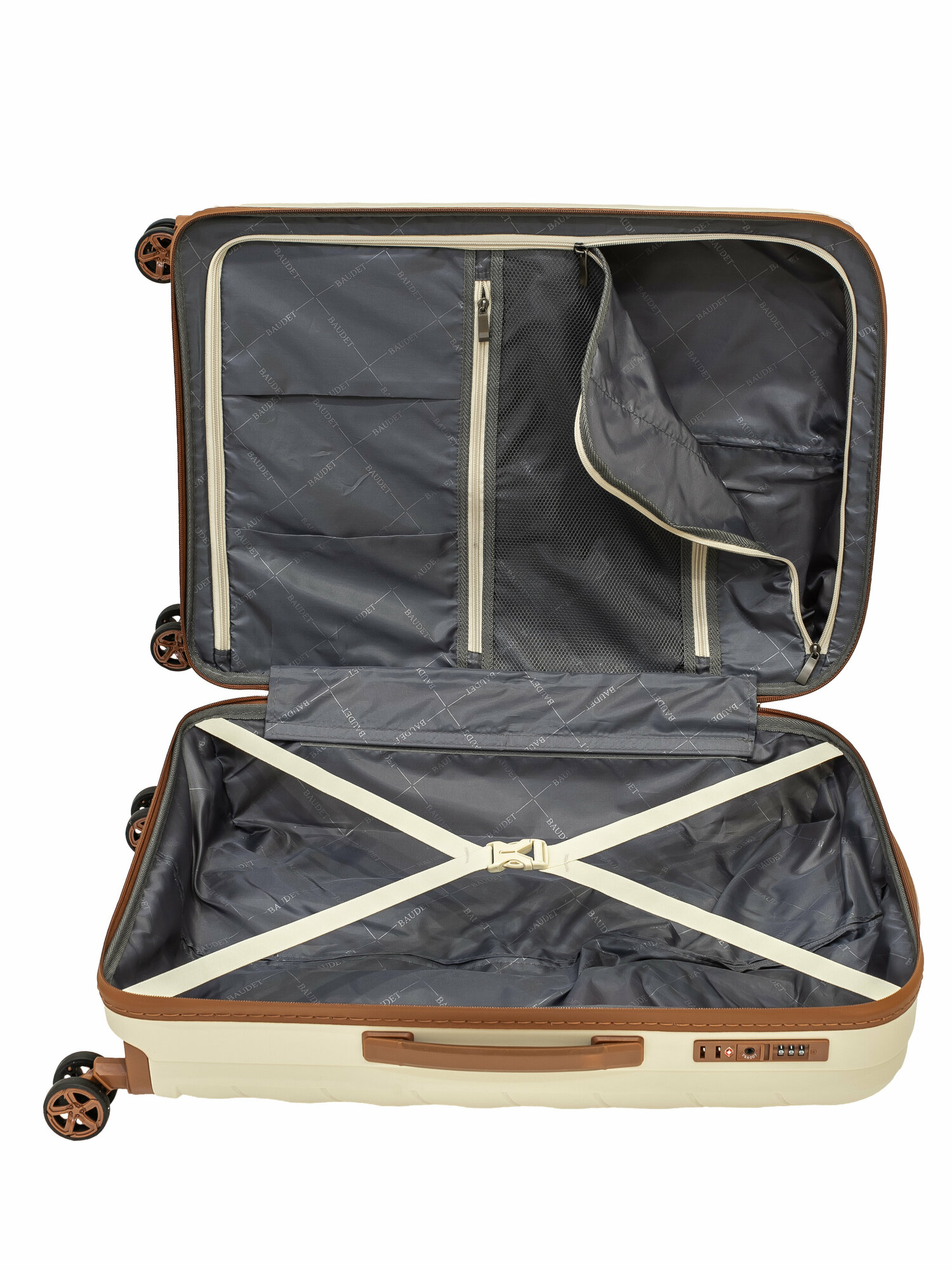 Чемодан BAUDET, 99 л, размер L, белый/коричневый