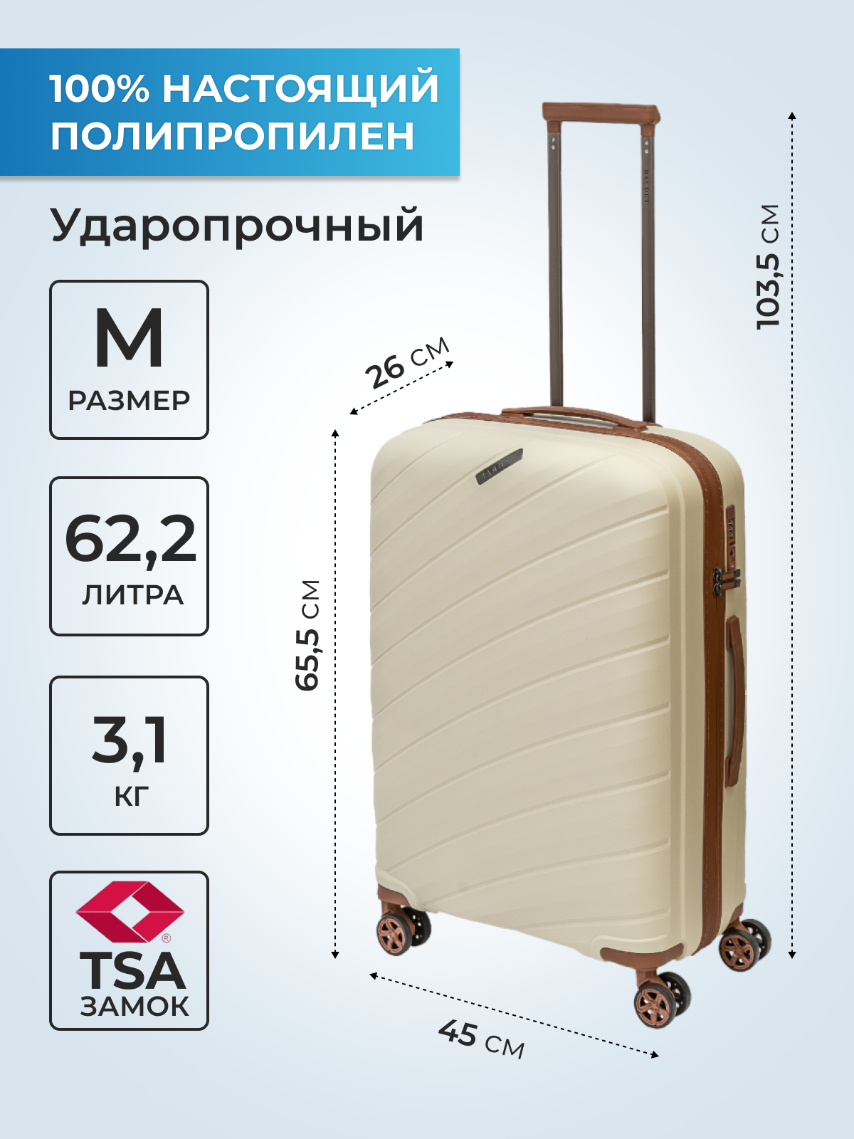 СохранитьЧемодан BAUDET, 62.2 л, размер M, белый/коричневый интересное: