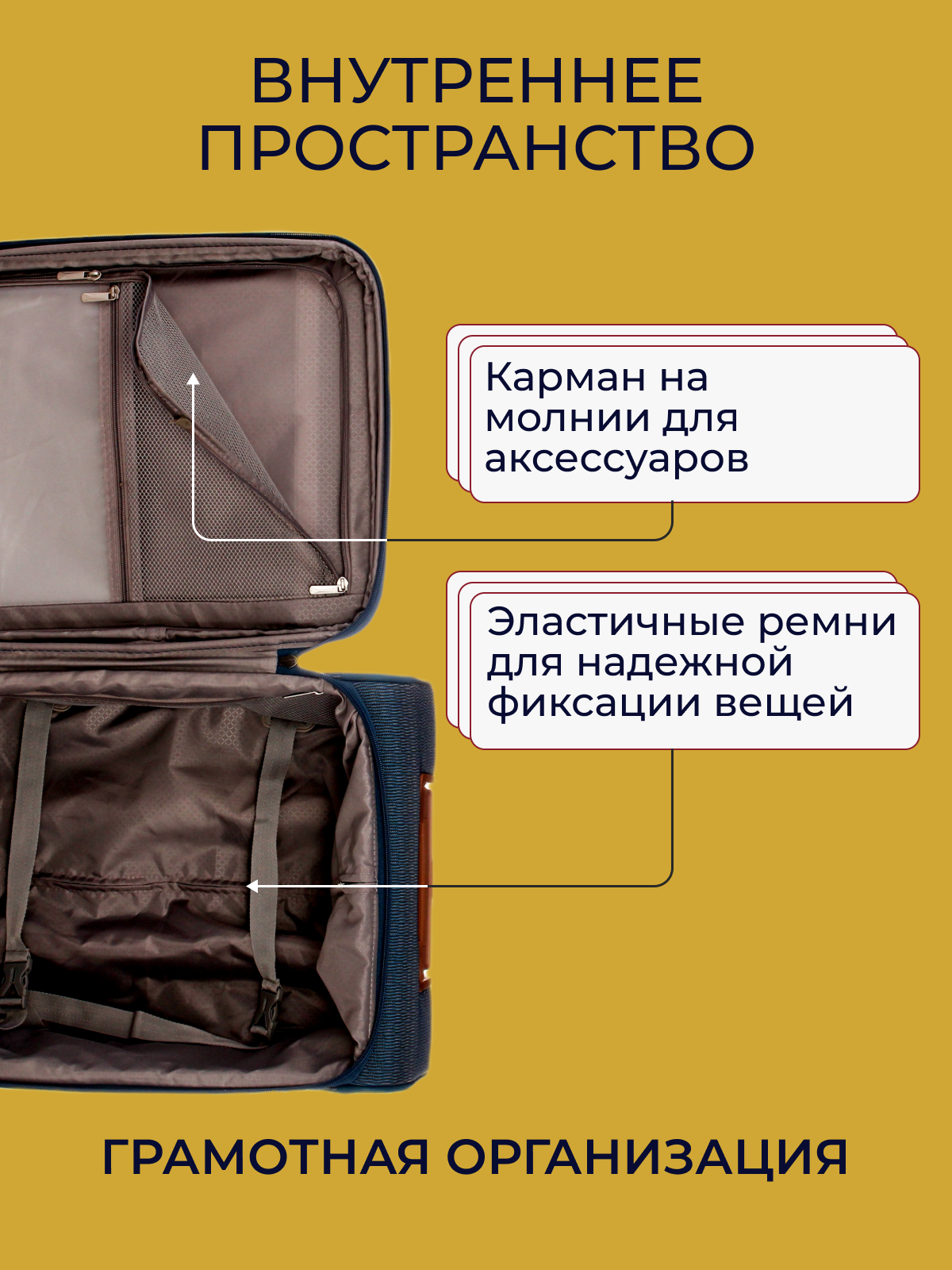 Чемодан BAUDET, 37 л, размер S, синий/коричневый интересное: