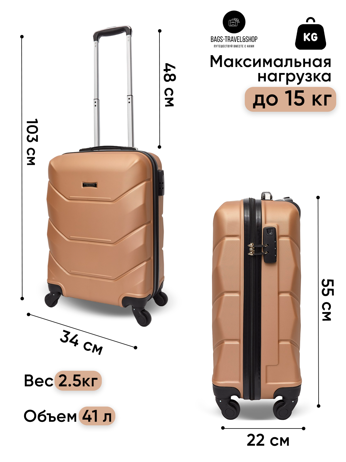 Чемодан Freedom, 38 л, размер S, светло-розовый