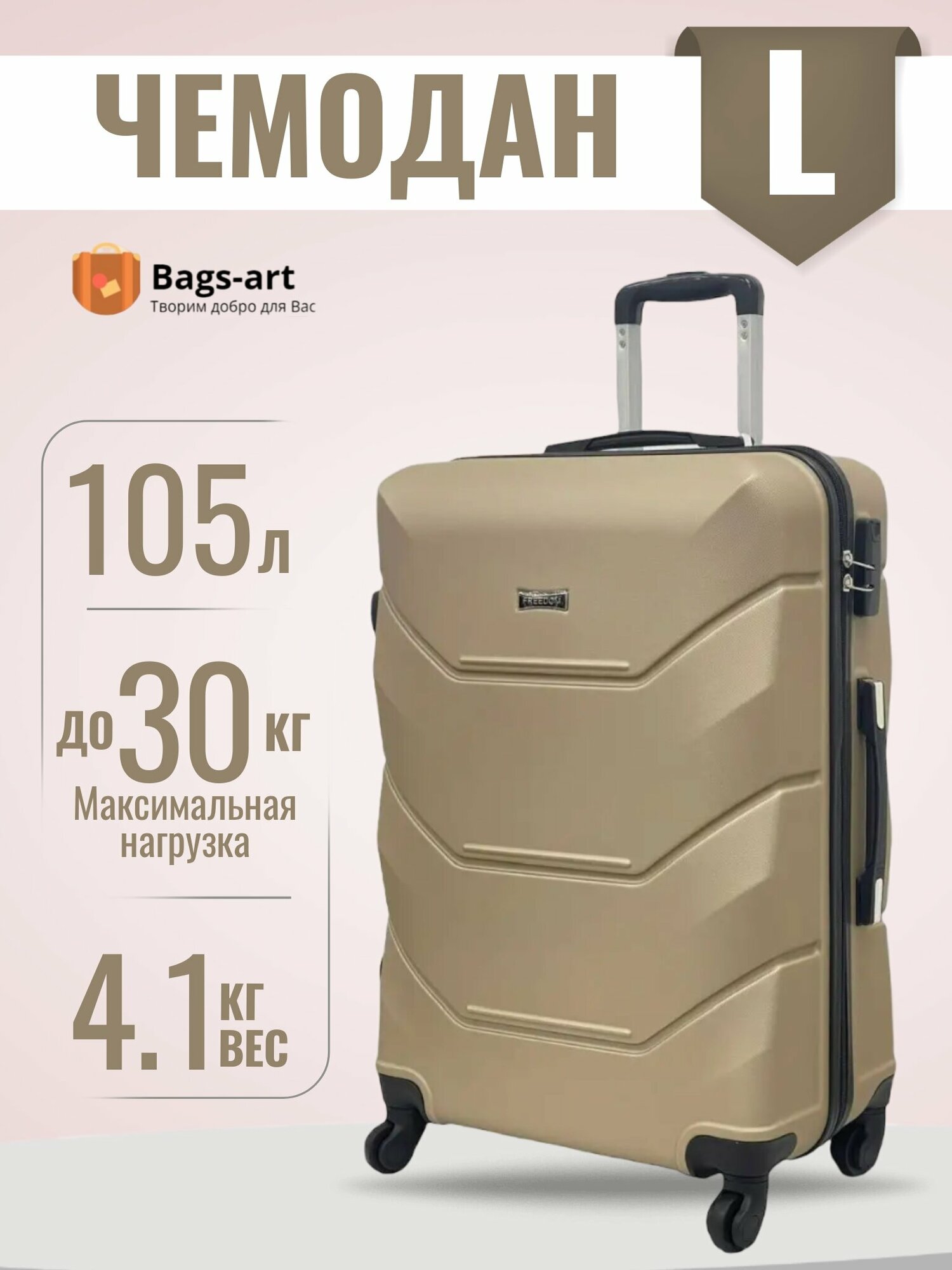 Чемодан Freedom, 105 л, размер L, белый