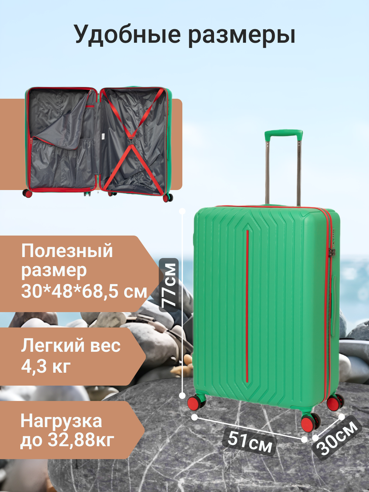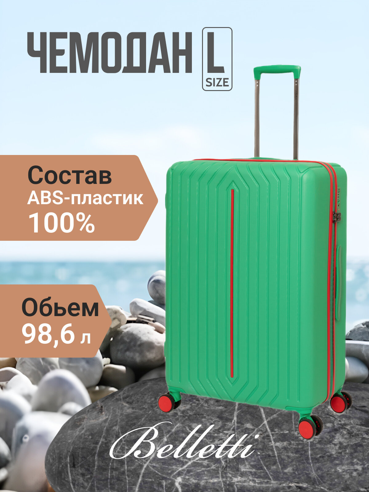 Чемодан Belletti, 98.6 л, размер L, зеленый/красный интересное: