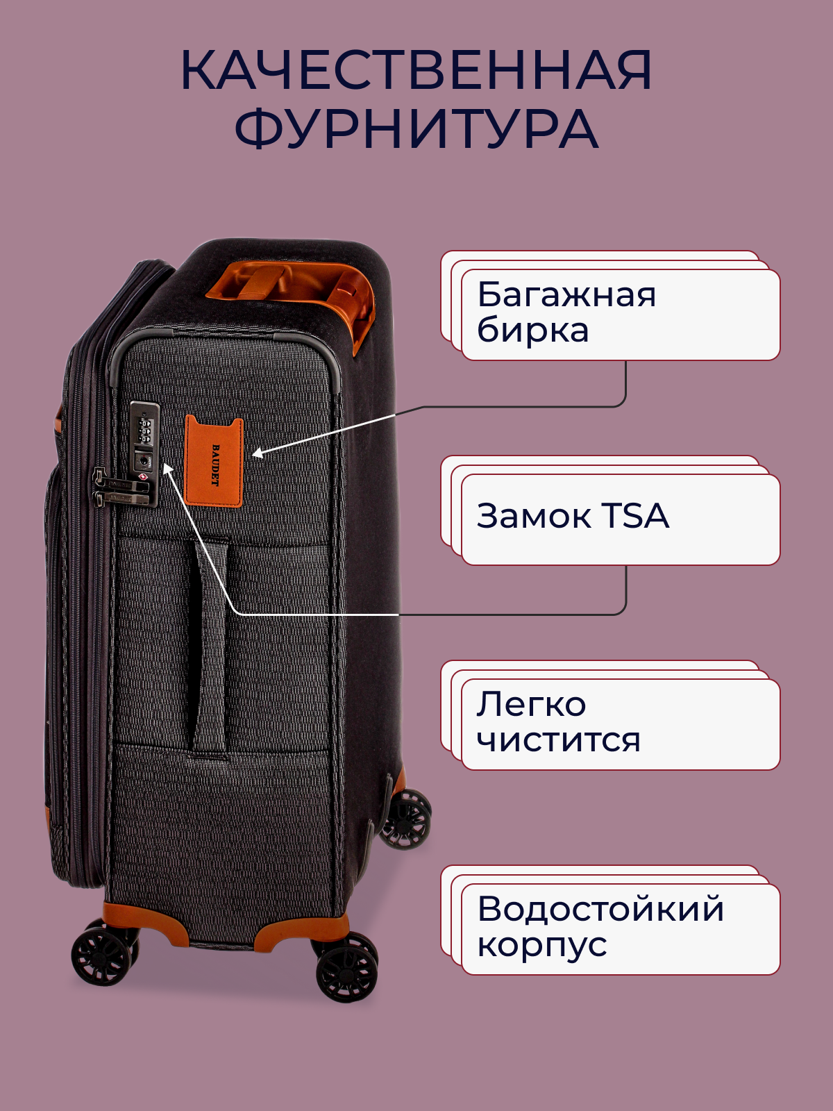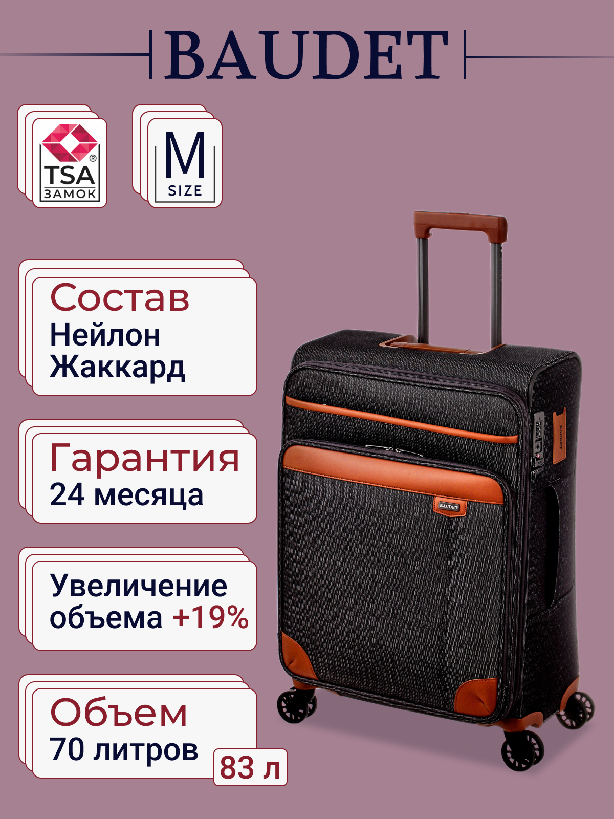 Чемодан BAUDET, 70 л, размер M, серый/коричневый интересное: