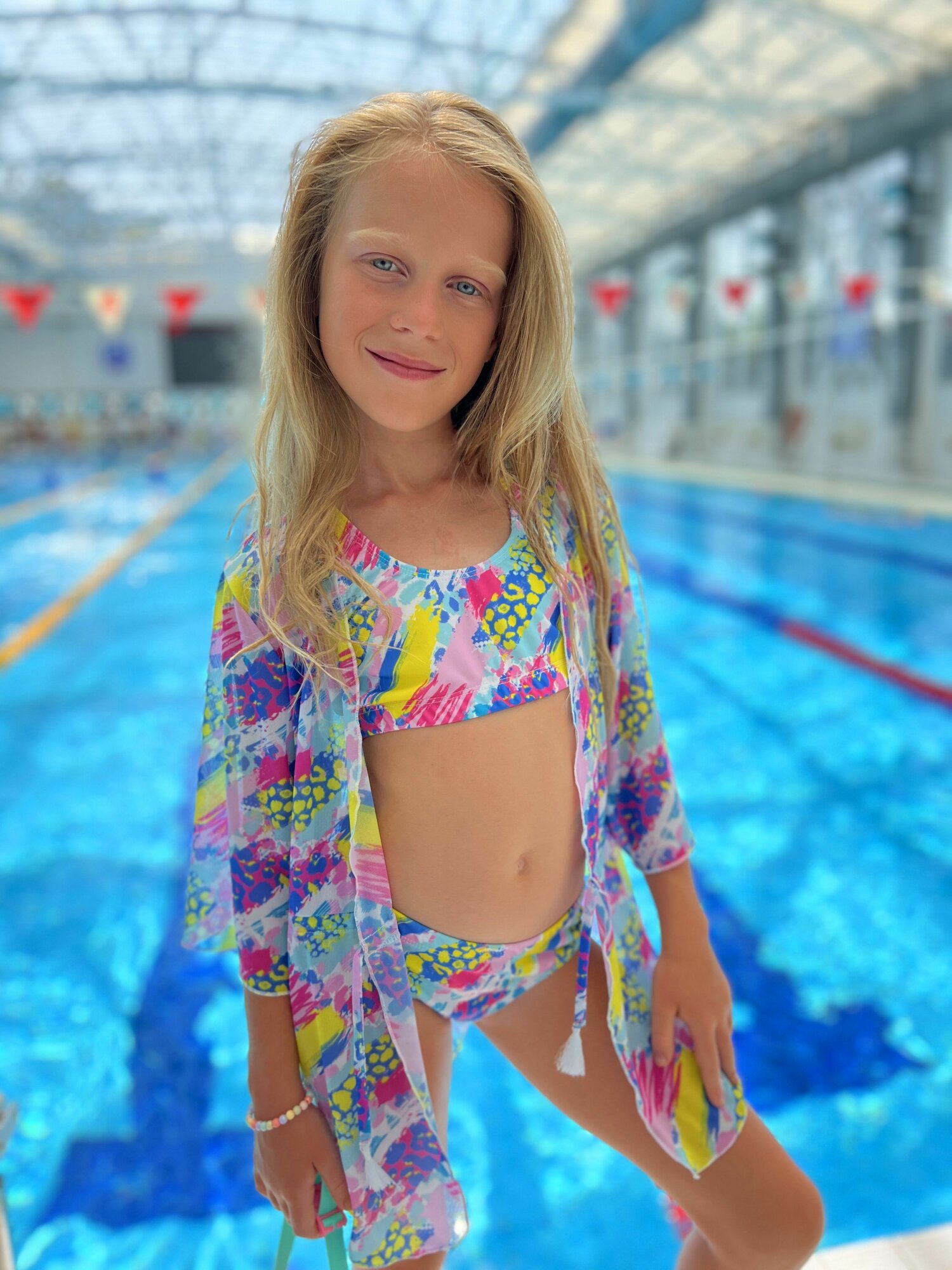 Купальник CAPITANIA AFRIKA, размер 152, голубой, желтый, розовый, фиолетовый
