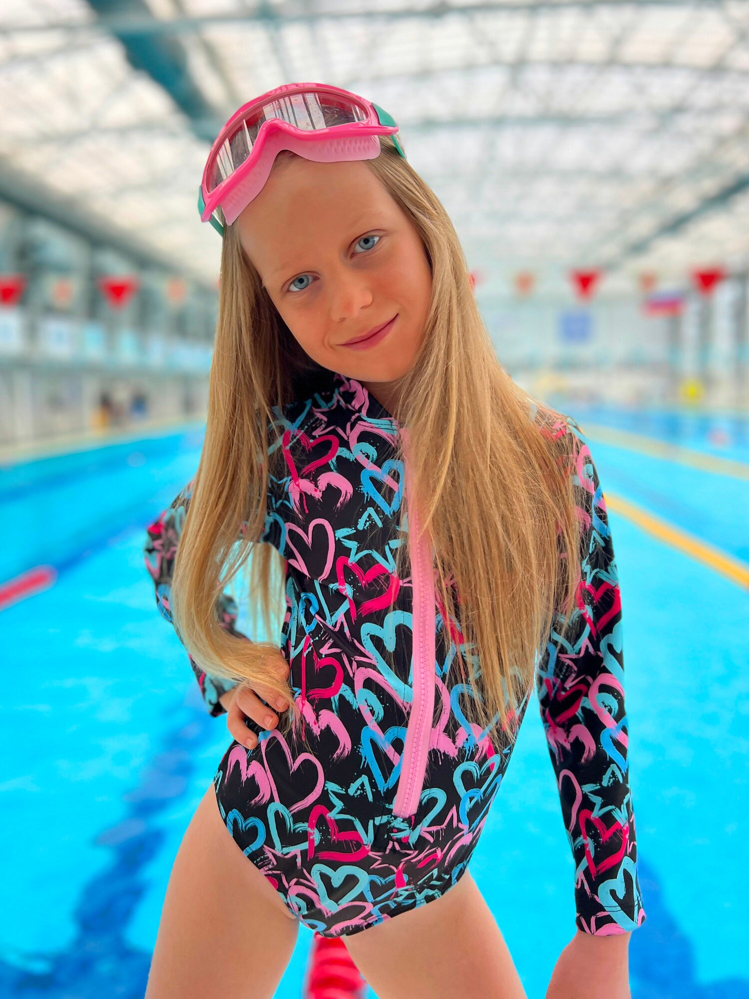 Купальник CAPITANIA BLACKHEART, размер 110, черный, розовый, красный