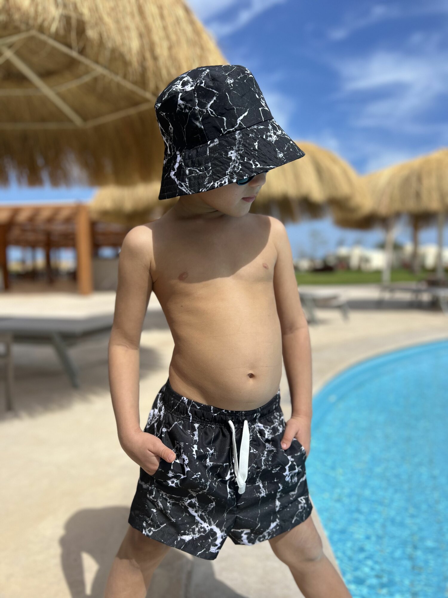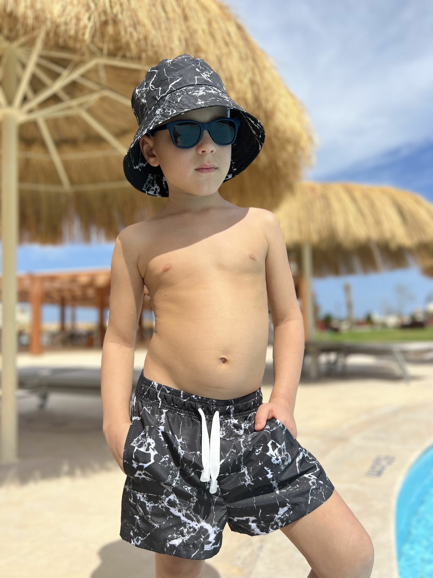 Шорты для плавания CAPITANIA MARBLE, размер 122-128, черный