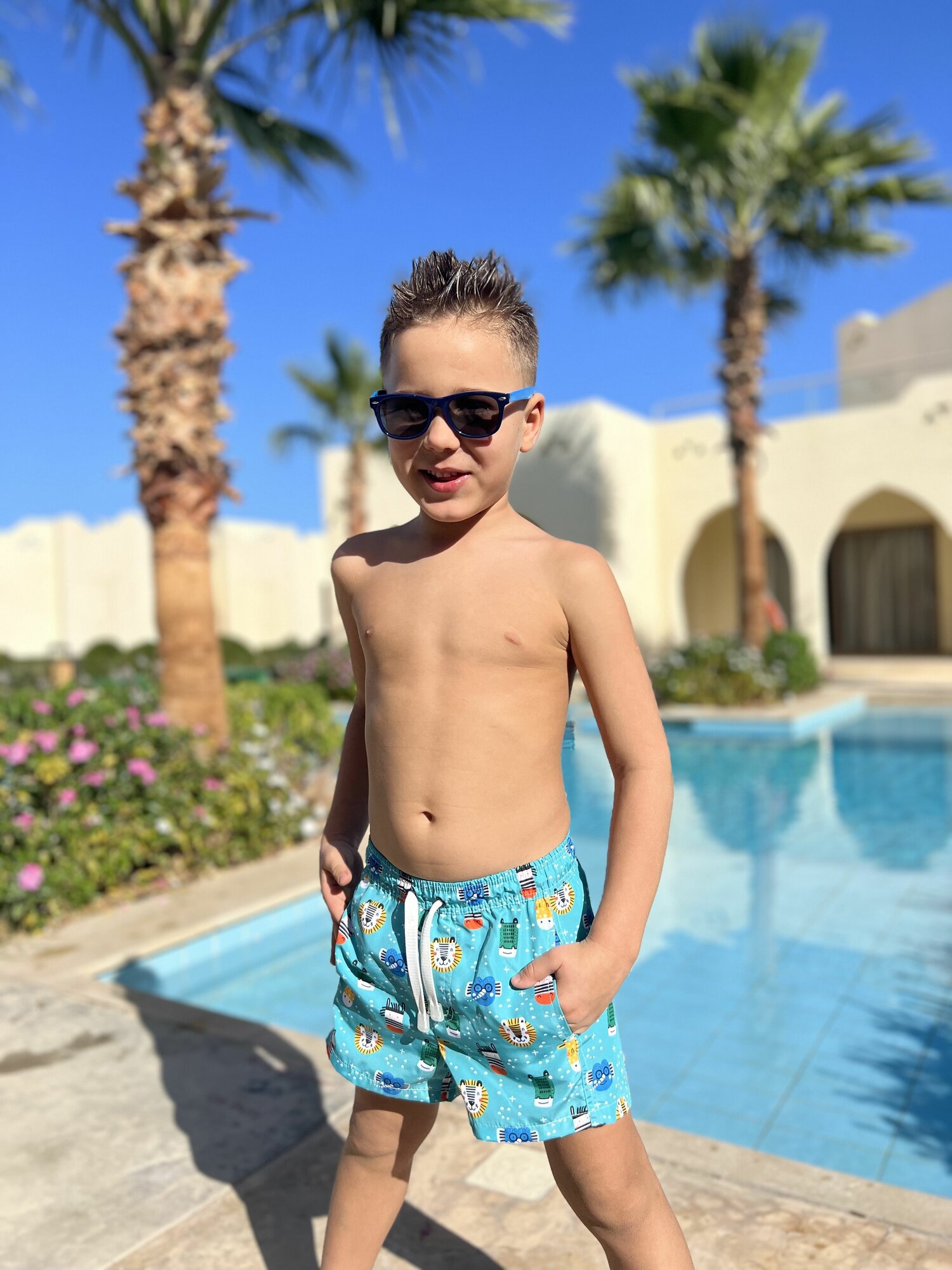 Шорты для плавания CAPITANIA PALMTREES, размер 98-104, синий