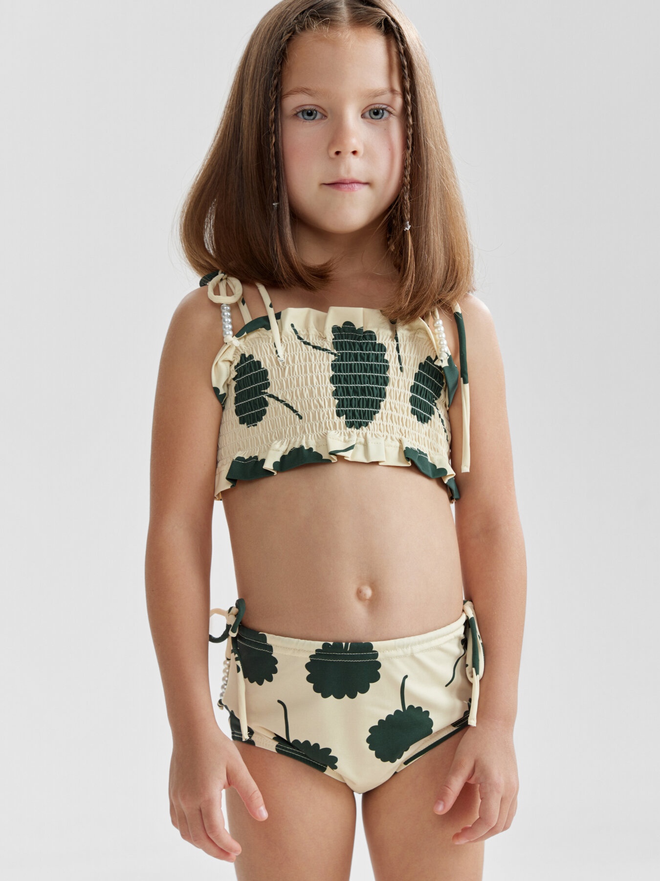 Купальник Happy Baby Весна-лето 2025, размер 116-122, бежевый/зеленый