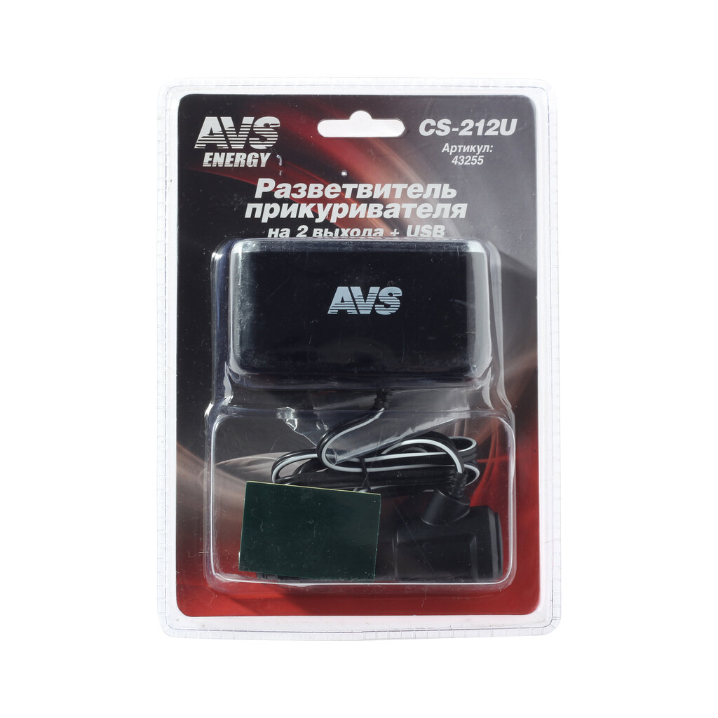 Купить Разветвитель прикуривателя 12/24V (на 2 выхода + USB) AVS CS212U