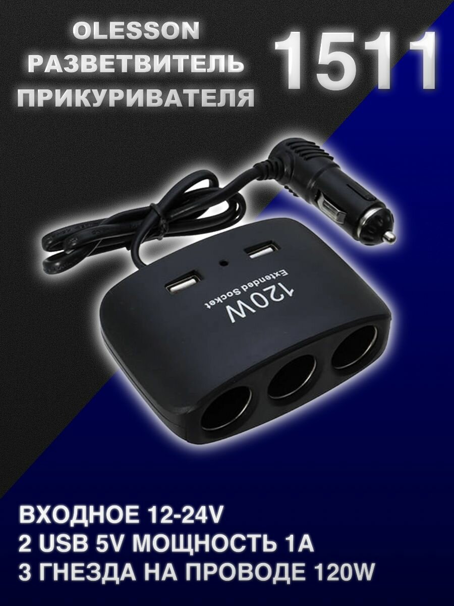 Автомобильный разветвитель прикуривателя Olesson 1511 интересное:
