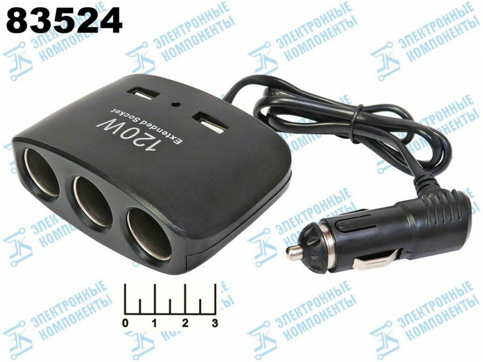 Разветвитель авто Olesson NO.1511 (2USB /3Sockets) (черный)