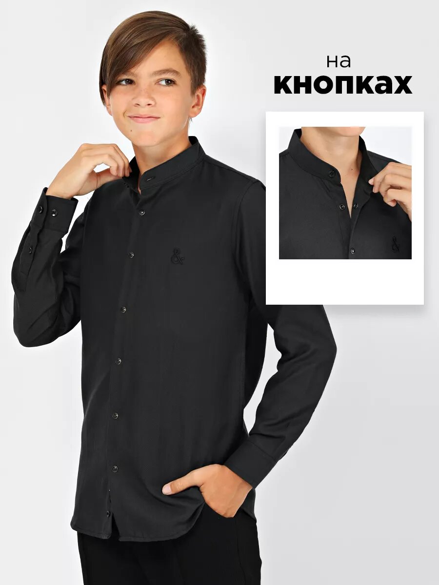 Школьная рубашка Соль&Перец, размер 134-32, черный матовый