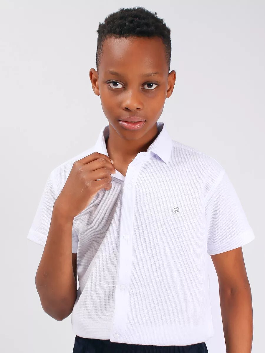 Школьная рубашка Соль&Перец Белая на кнопках, размер 140, белый