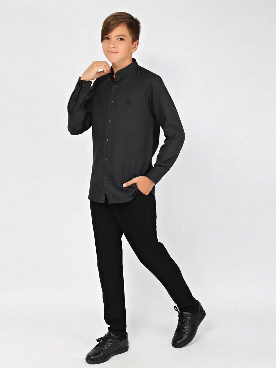 Школьная рубашка Соль&Перец, размер 140-33, черный матовый