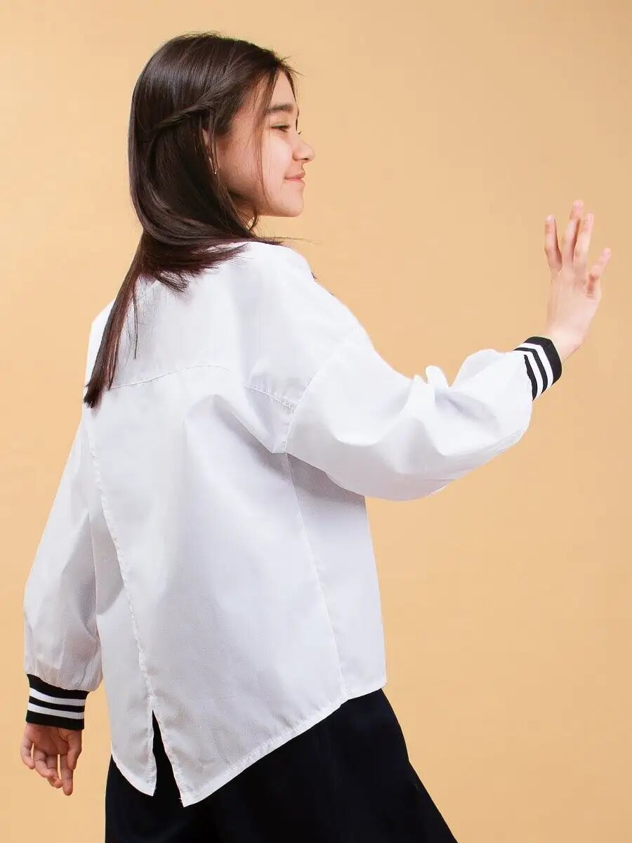 Купить Школьная рубашка Соль&Перец оверсайз с необычной спинкой, размер 128, белый