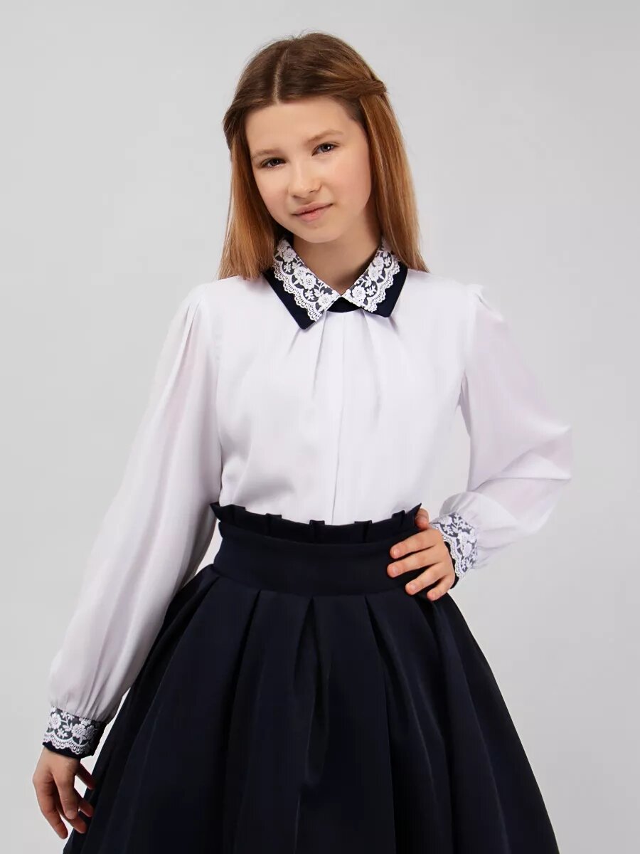 Купить Школьная блуза, размер 146-40, белый/синий