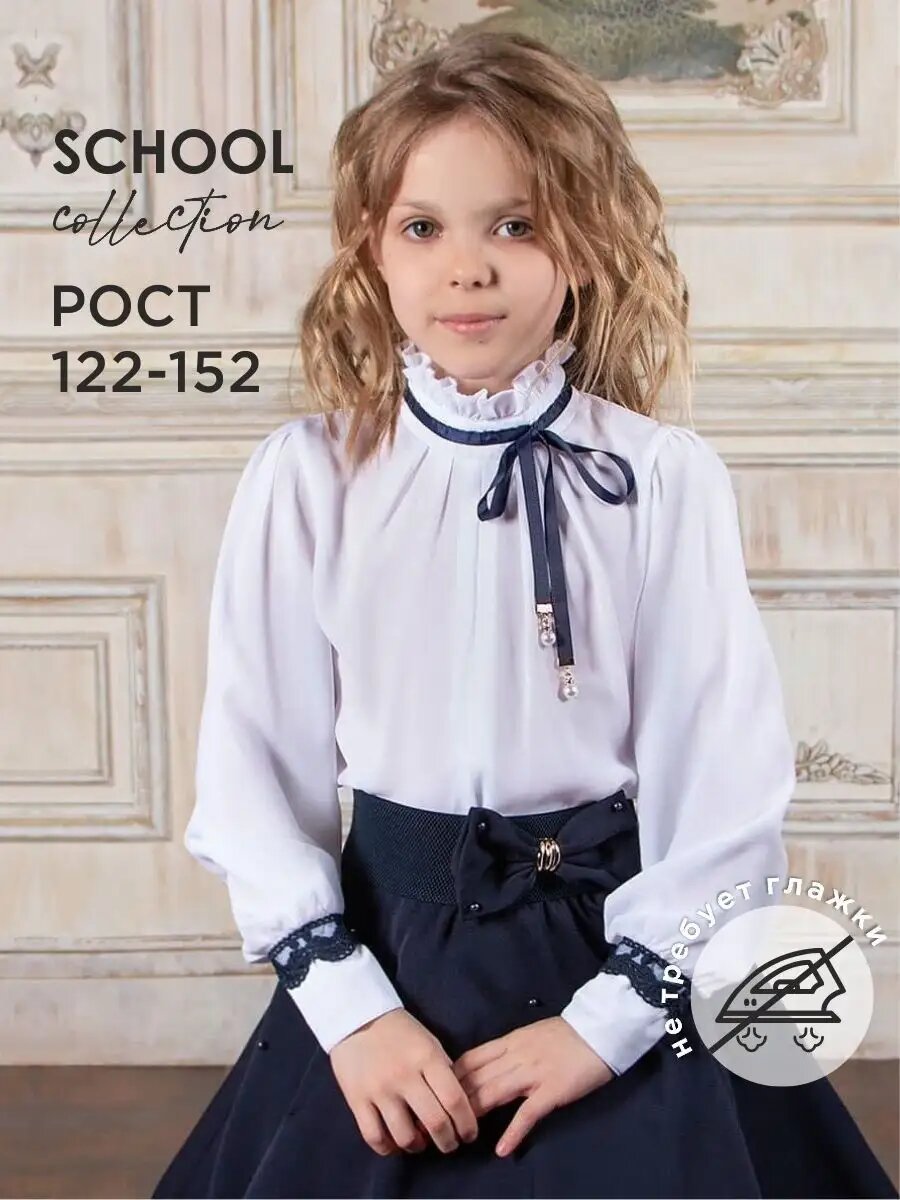 Школьная блуза Праздничная, нарядная, размер 128-34, белый