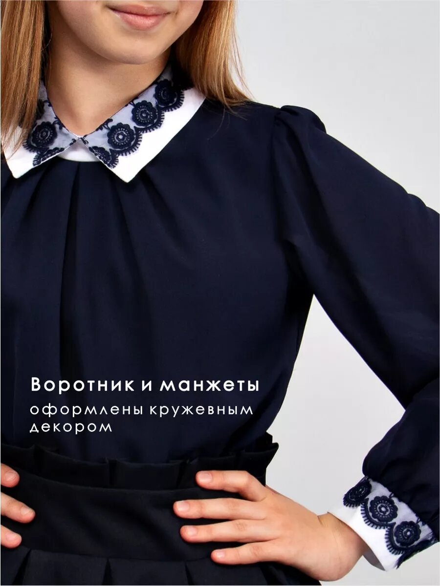 Школьная блуза Соль&Перец, размер 140/146, синий, белый