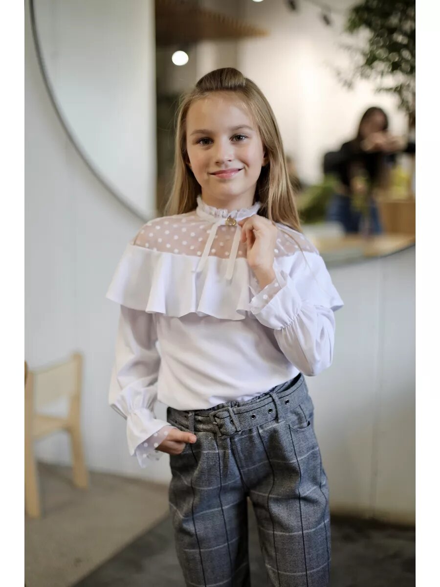 Школьная блуза Праздничная, нарядная, размер 128-34, белый