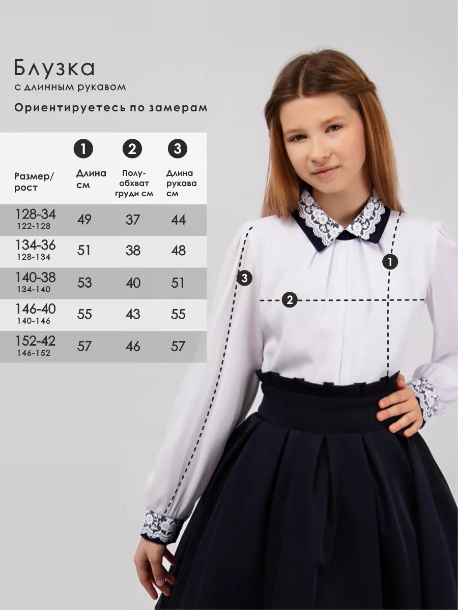 СохранитьШкольная блуза, размер 140-38, белый/синий интересное: