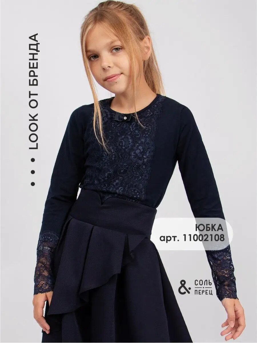 Школьная блуза Соль&Перец, размер 146, темно-синий/синий интересное: