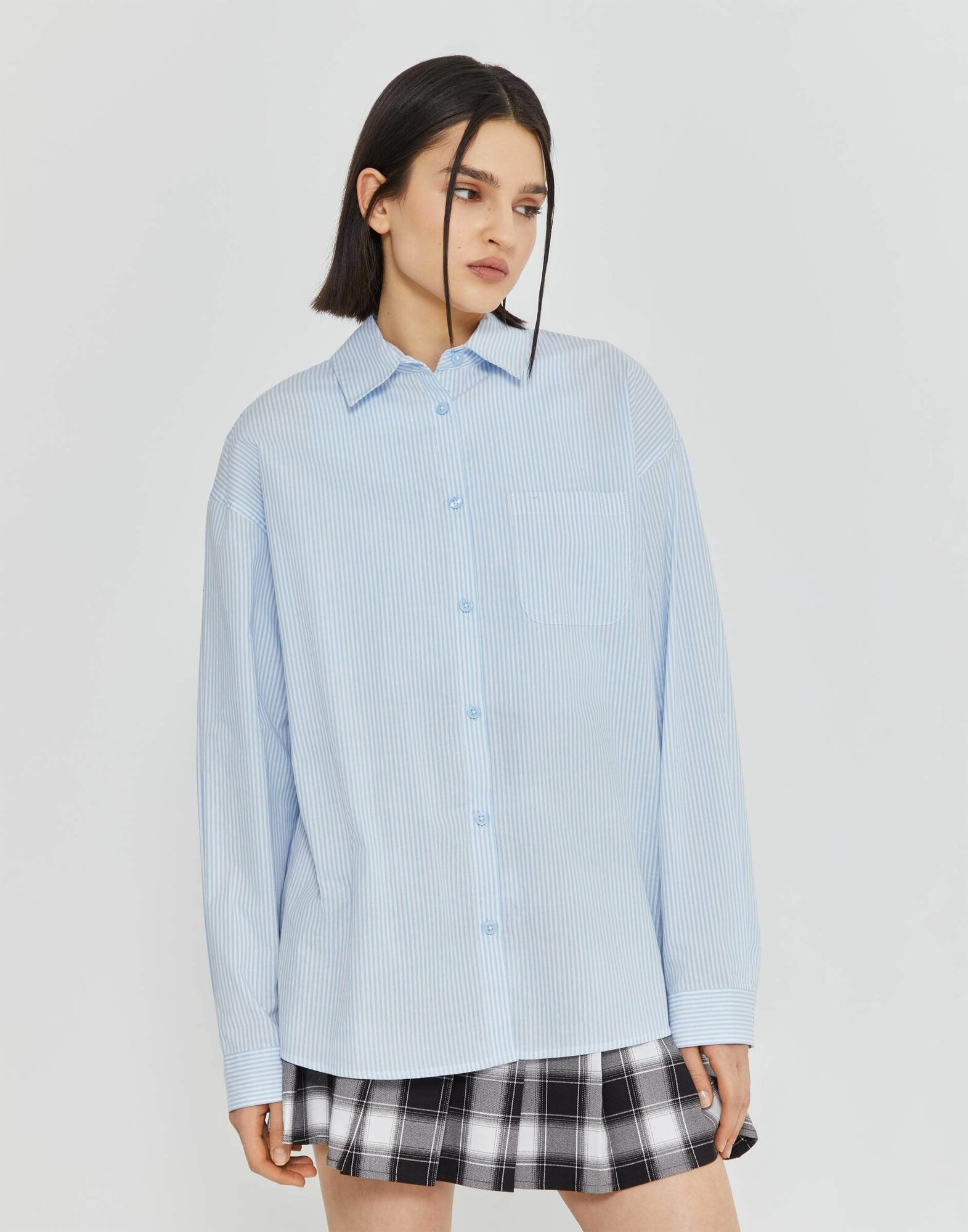 Купить Рубашка Gloria Jeans, размер 9-11л/134-146, голубой/белый