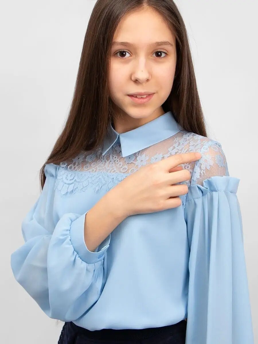Купить Школьная блуза Соль&Перец, размер 128-134, голубой