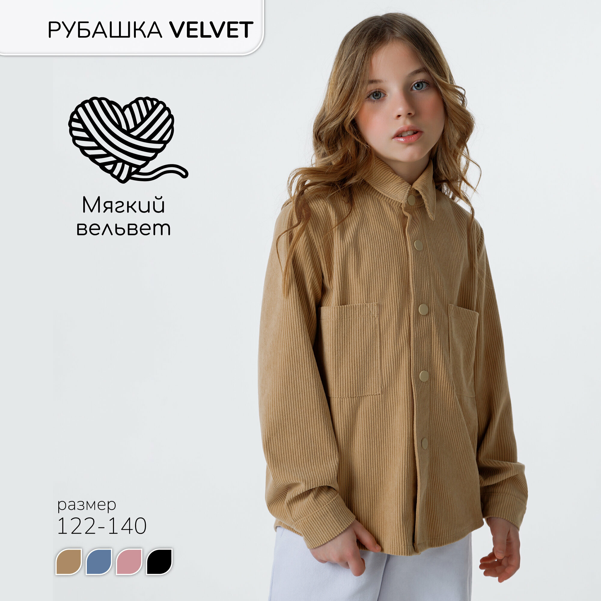 Школьная рубашка Amarobaby VELVET, размер 122, beige