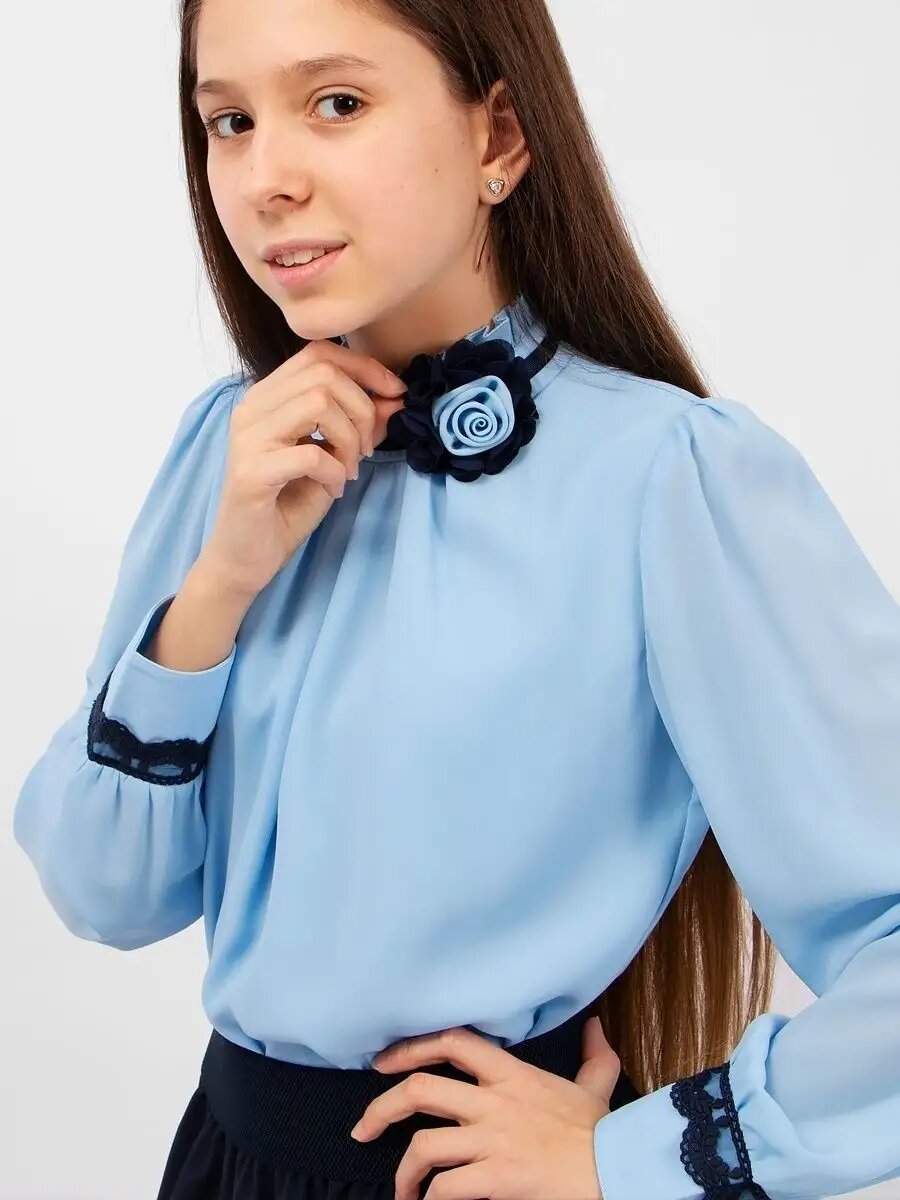 Купить Школьная блуза Соль&Перец, размер 128, синий, голубой