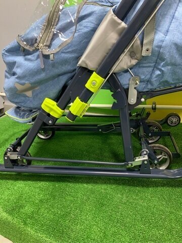 | Минусы: | При переходе из положения полулёжа в положение сидя не защелкивается фиксатор. Мне так повезло или общая недоработка - не знаю. Приходится фиксатор в паз засовывать пальцами. И второе неудобство - при положении ручки "лицом вперёд" не влезает по длине в лифт. Зачем сделали такой длинный нос у санок? Или сделали бы его съёмный. |