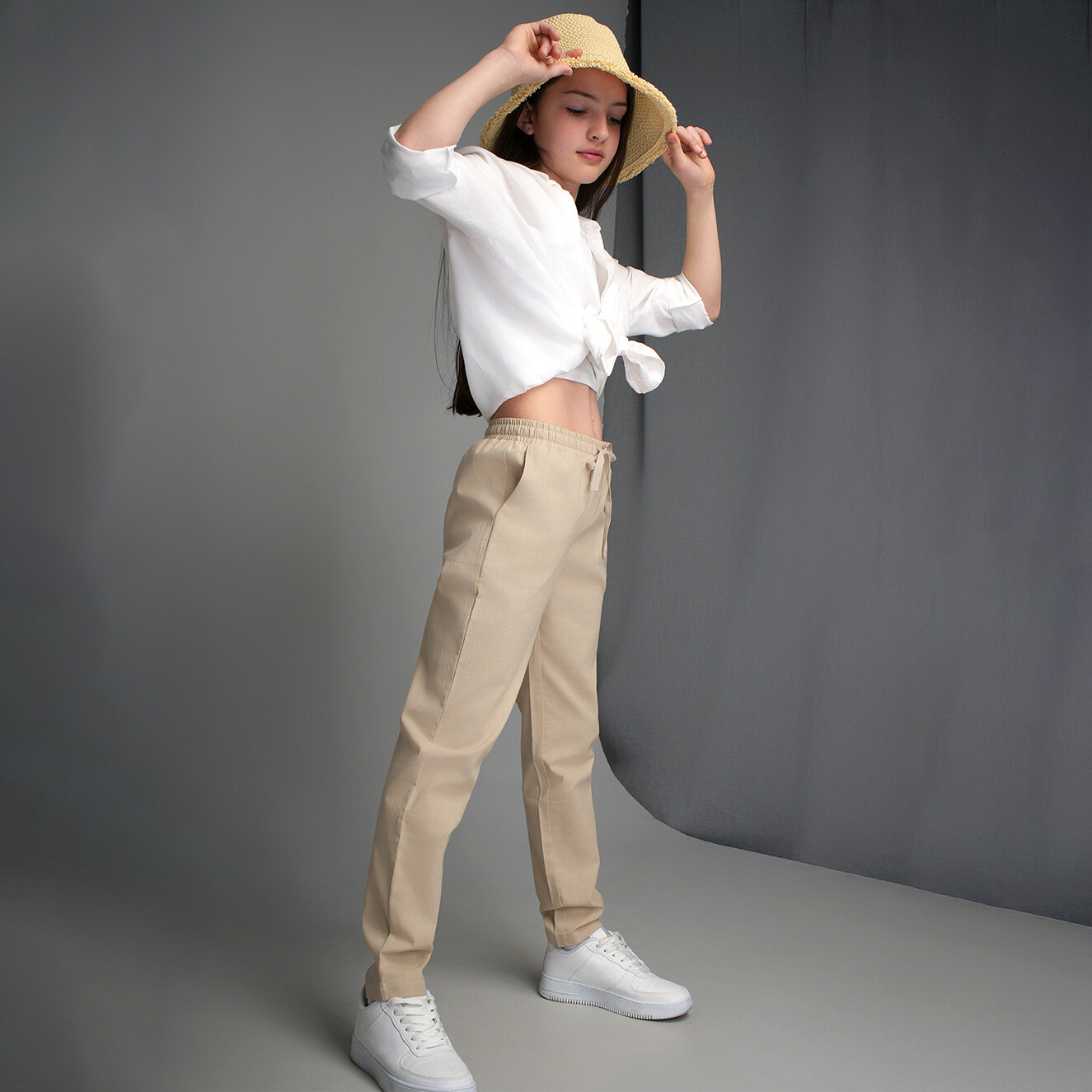 Брюки Happyfox Для девочек, размер 128, бежевый