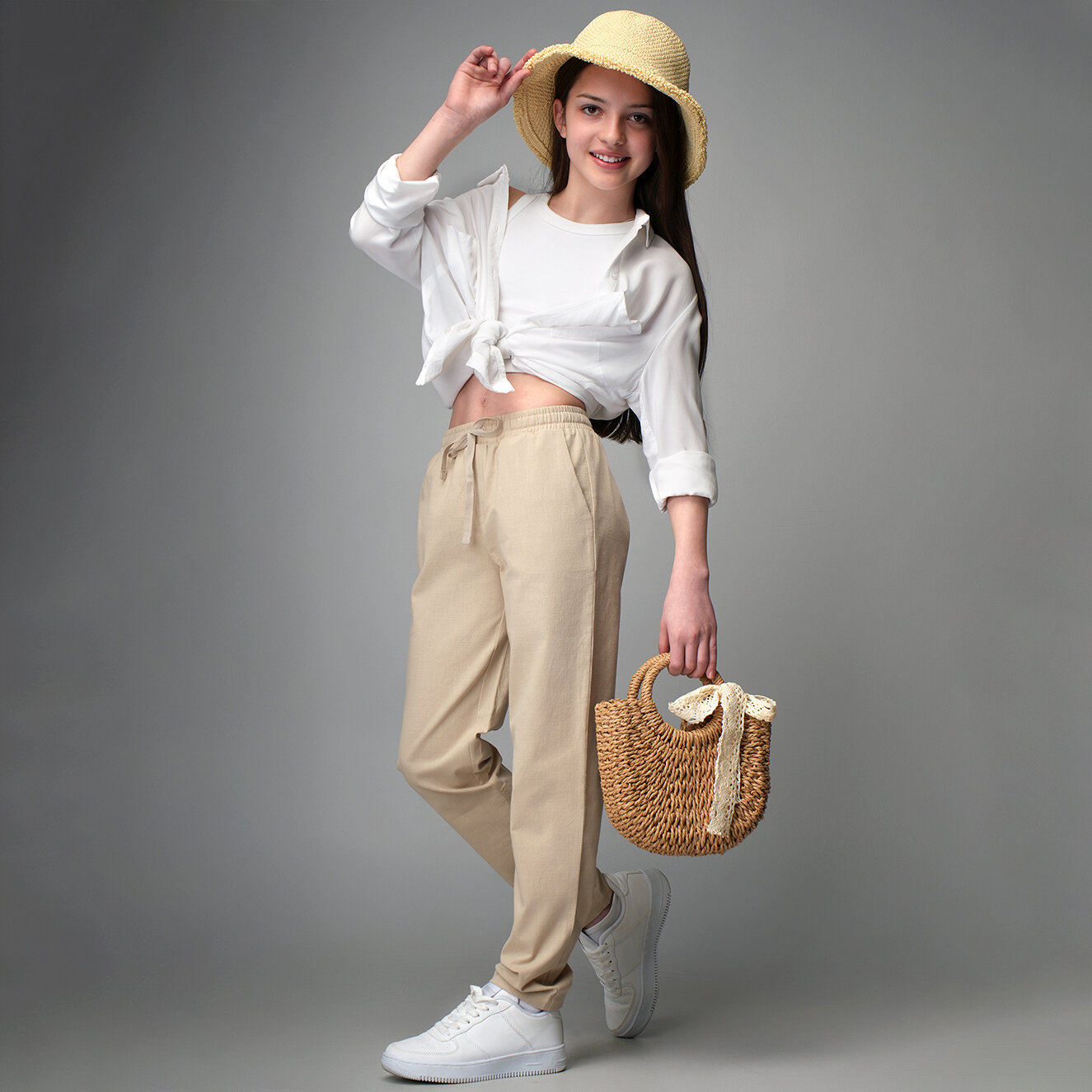 Купить Брюки Happyfox Для девочек, размер 122, бежевый