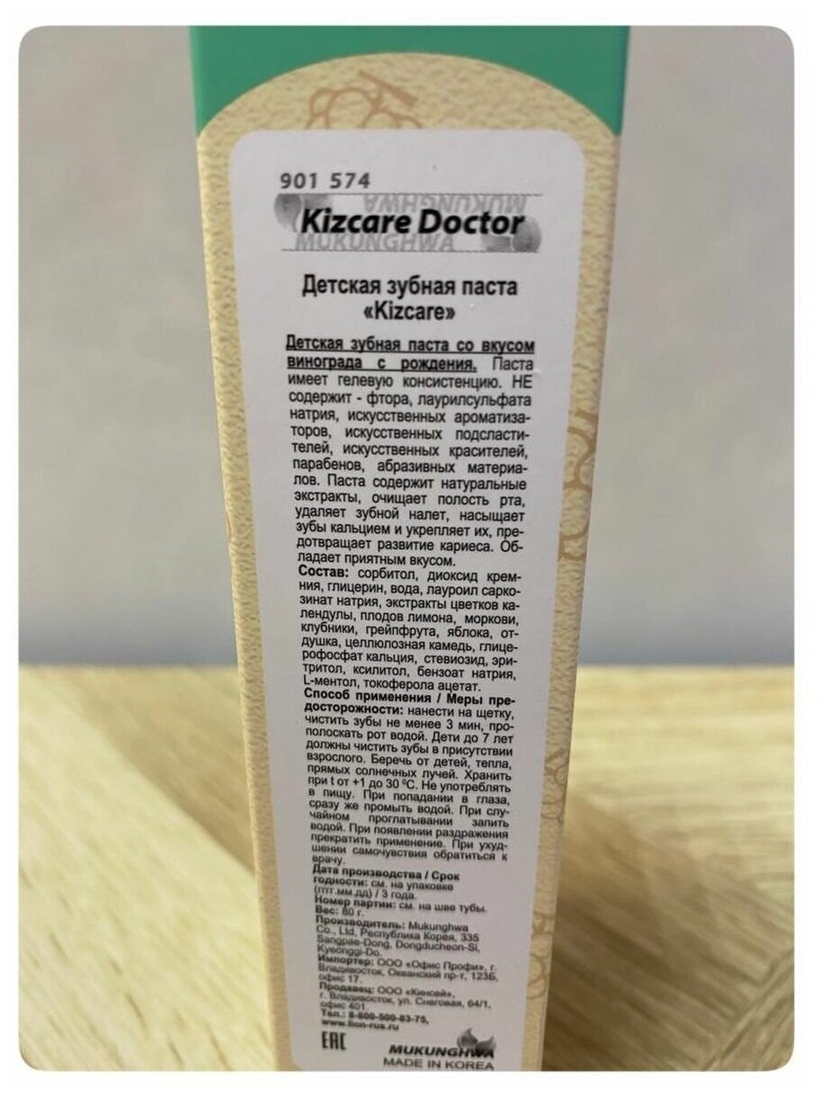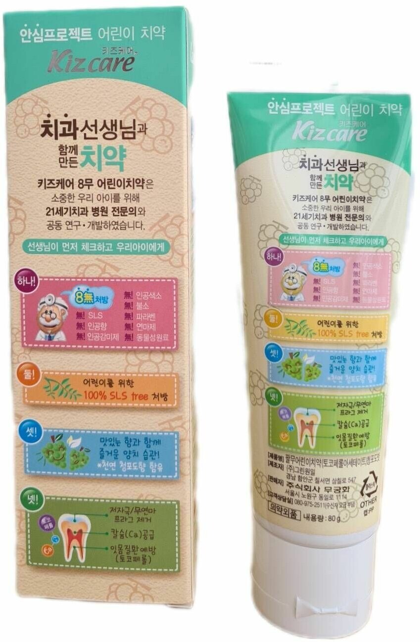 Mukunghwa Kizcare Doctor Детская зубная паста гелевая лечебная со вкусом виноградного мороженого с 2 лет интересное: